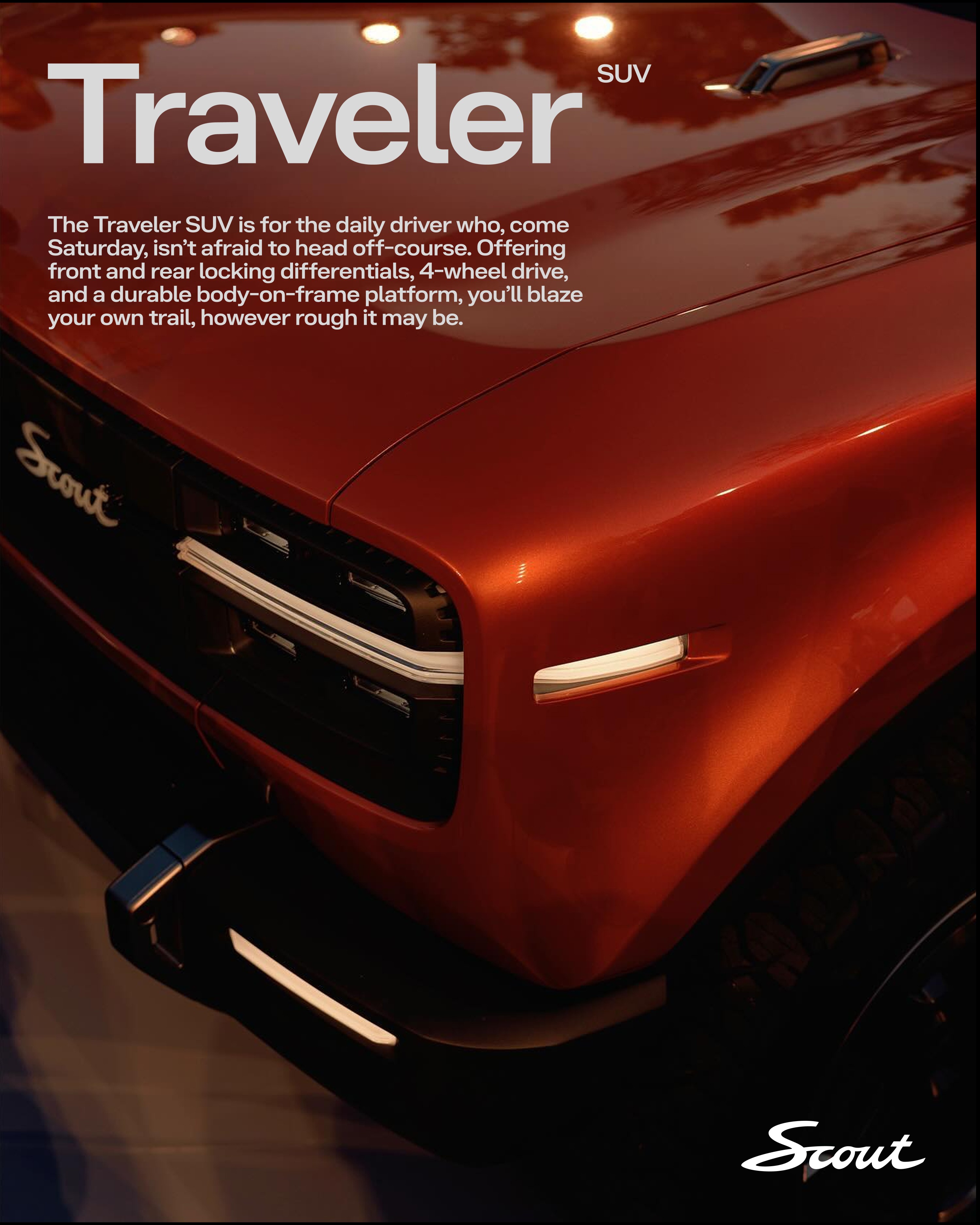 Scout Motors re-entered the market as an all electric automotive brand carrying deep heritage but no contemporary identity. The challenge was to establish the brand while introducing it to the public, developing a system that could support immediate visibility and long-term growth at the same time.